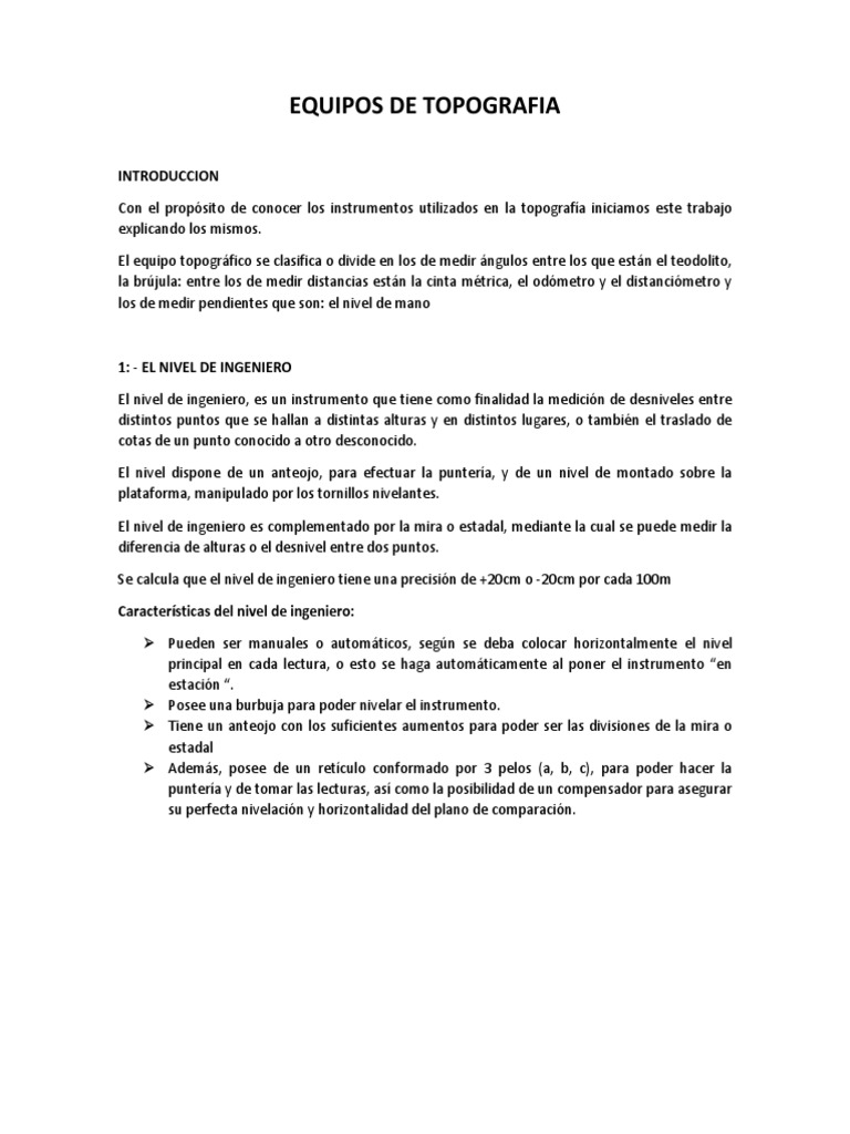 como estaciones teodolitos, nivel de ingeniero, estación total entre otros.