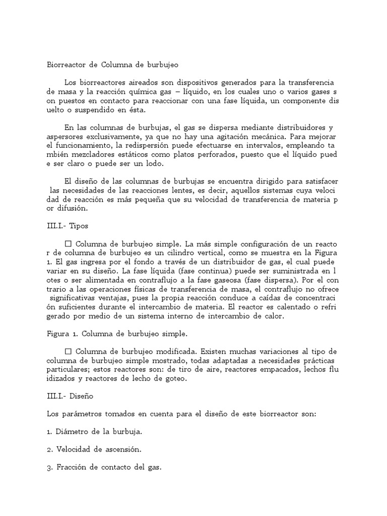 Columna de burbujeo simple. La más simple configuración de un reacto