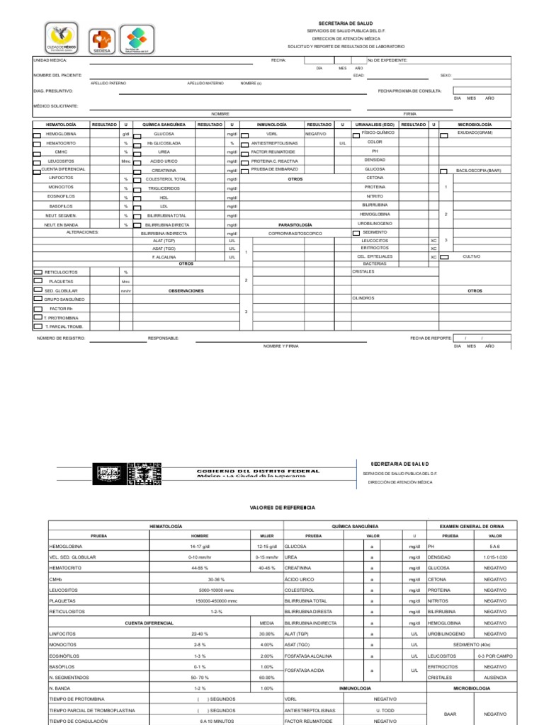 HEMATOLOGÍA RESULTADO U QUÍMICA SANGUÍNEA RESULTADO U INMUNOLOGÍA RESULTADO U URIANALISIS (EGO) RESULTADO U MICROBIOLOGÍA