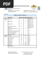HEMATOCRITO % Hb GLICOSILADA % ANTIESTREPTOLISINAS U/L COLOR