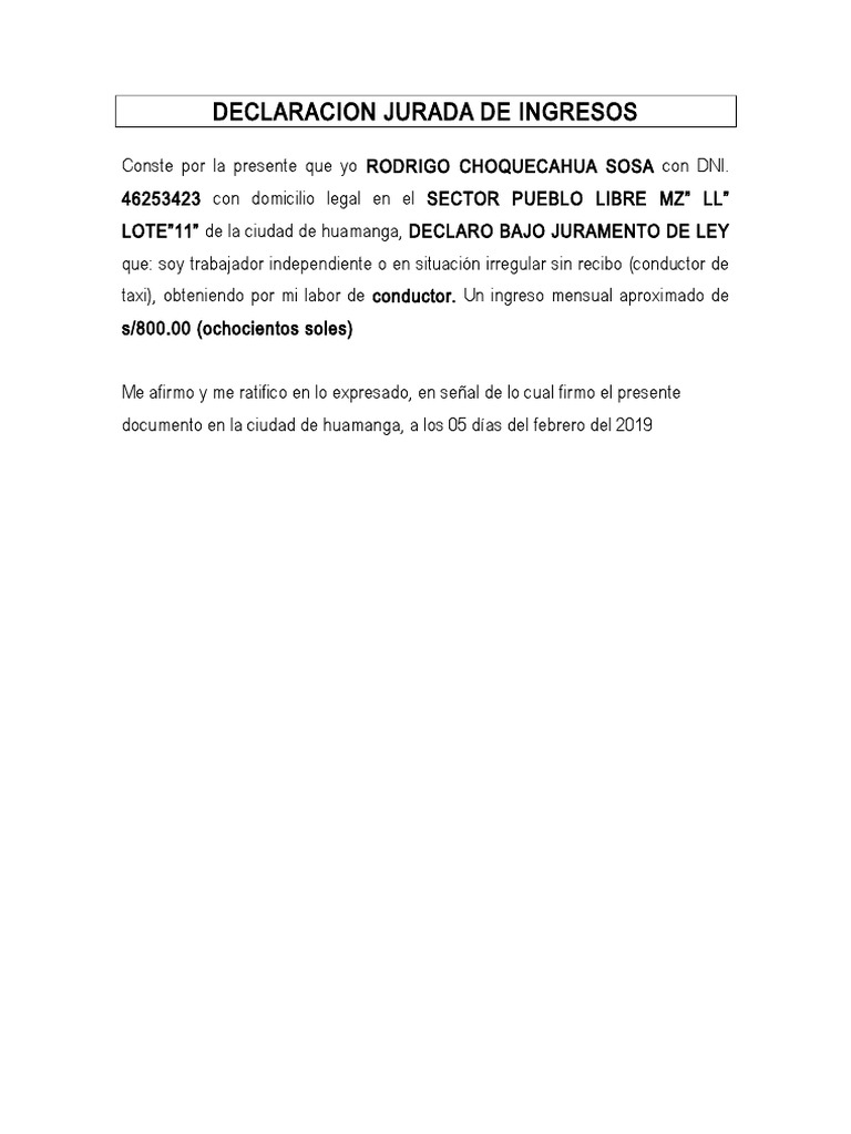 DECLARACION JURADA DE INGRESOS