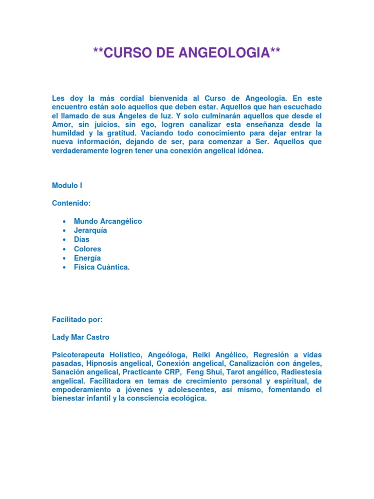 angelical. Facilitadora en temas de crecimiento personal y espiritual, de