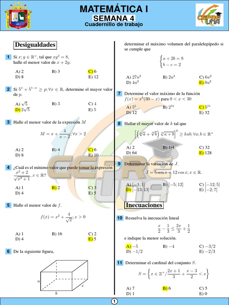 5 Halle el menor valor de f . Inecuaciones