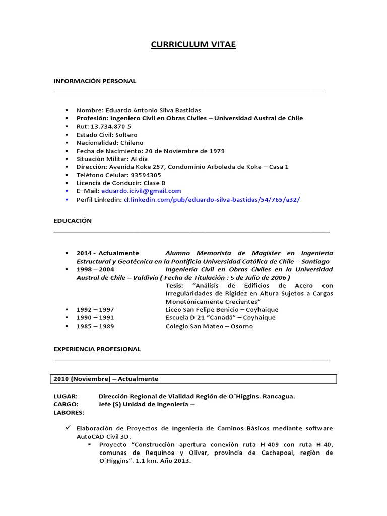 Profesión: Ingeniero Civil en Obras Civiles – Universidad Austral de Chile