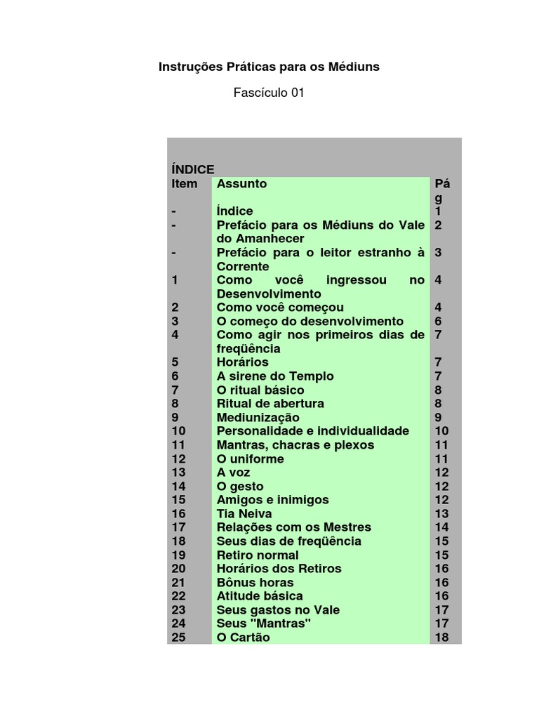 Este folheto é dirigido aos Médiuns do Vale do Amanhecer.