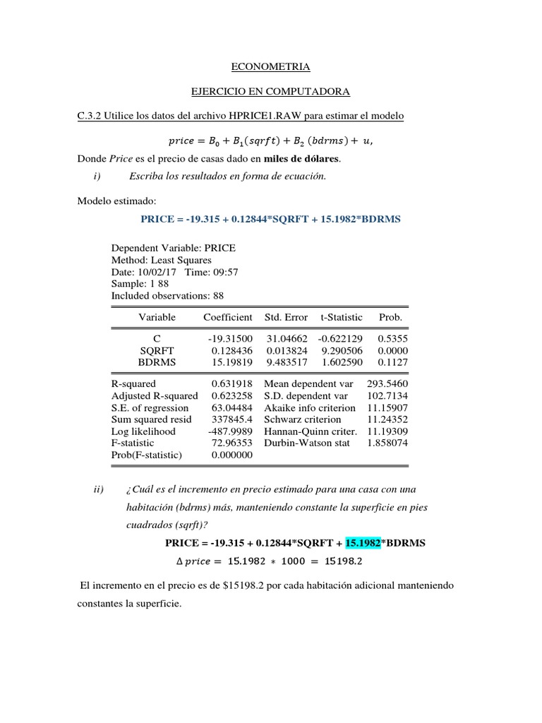 C.3.2 Utilice los datos del archivo HPRICE1.RAW para estimar el modelo