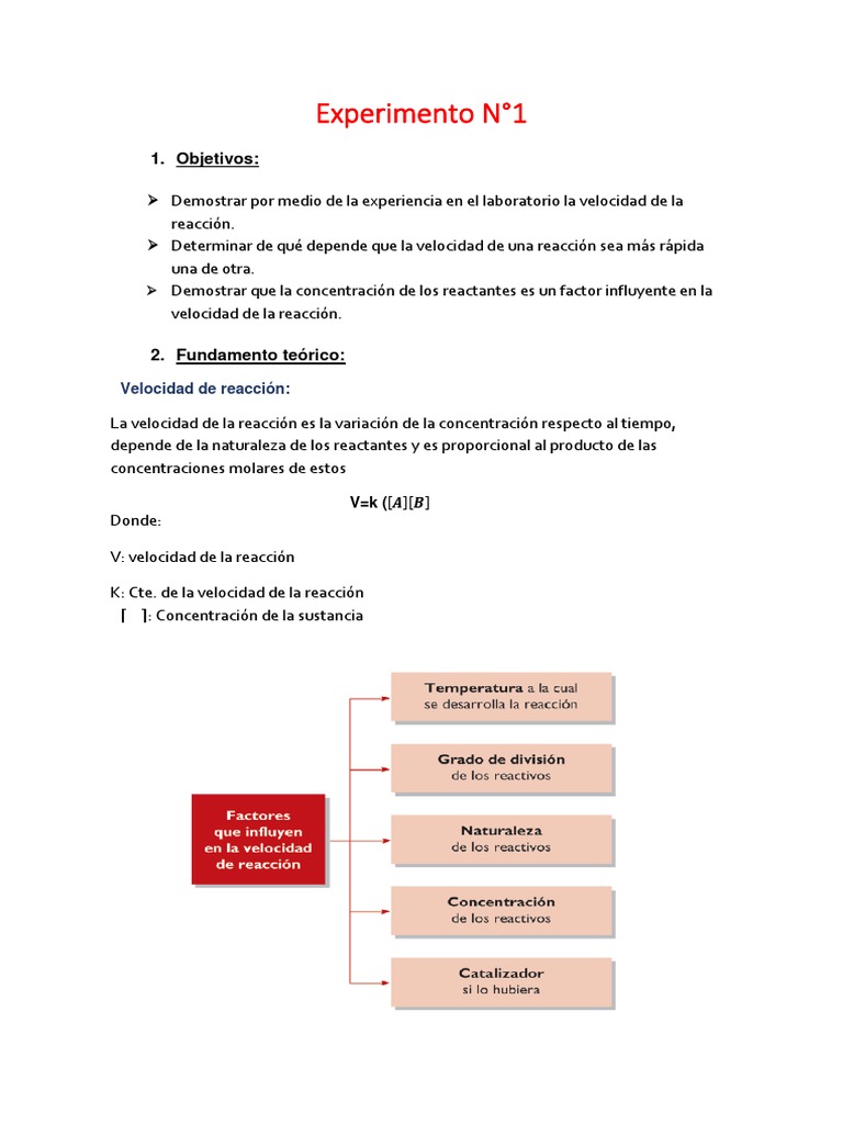 Experimento N°1: “Velocidad de reacción en Sistemas