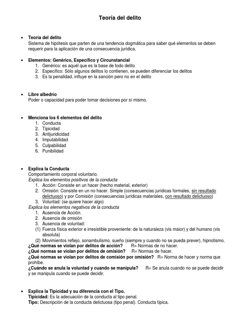 Tipo: Descripción de la conducta delictuosa (tipo penal). Conducta típica.