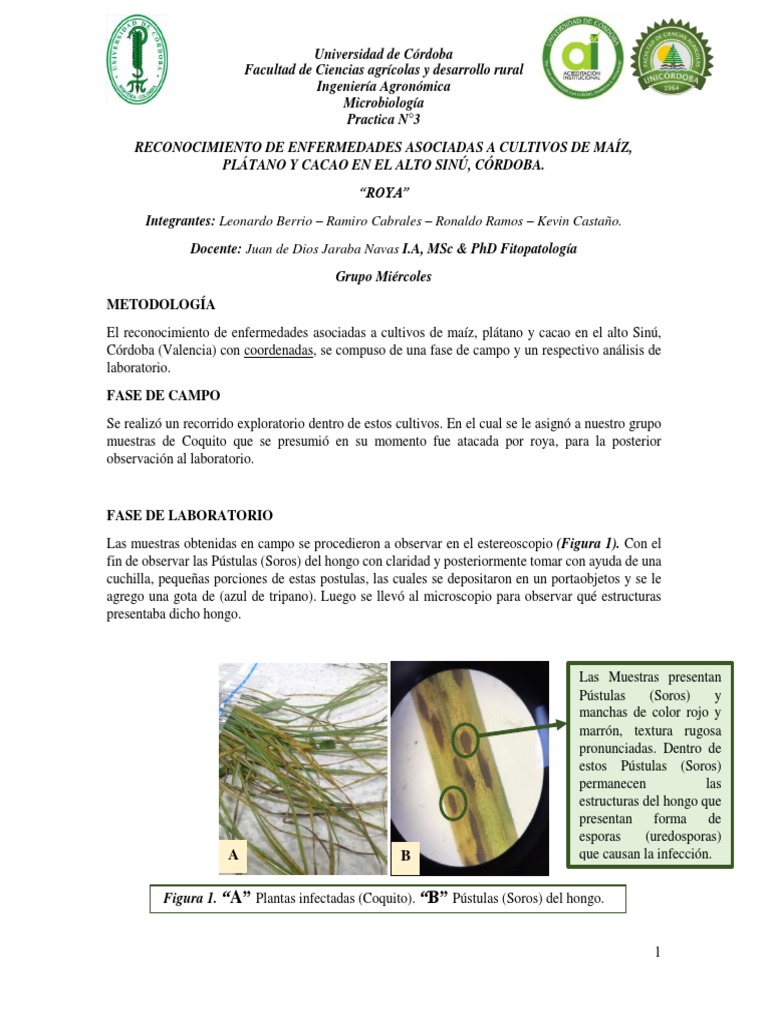 El reconocimiento de enfermedades asociadas a cultivos de maíz, plátano y cacao en el alto Sinú,