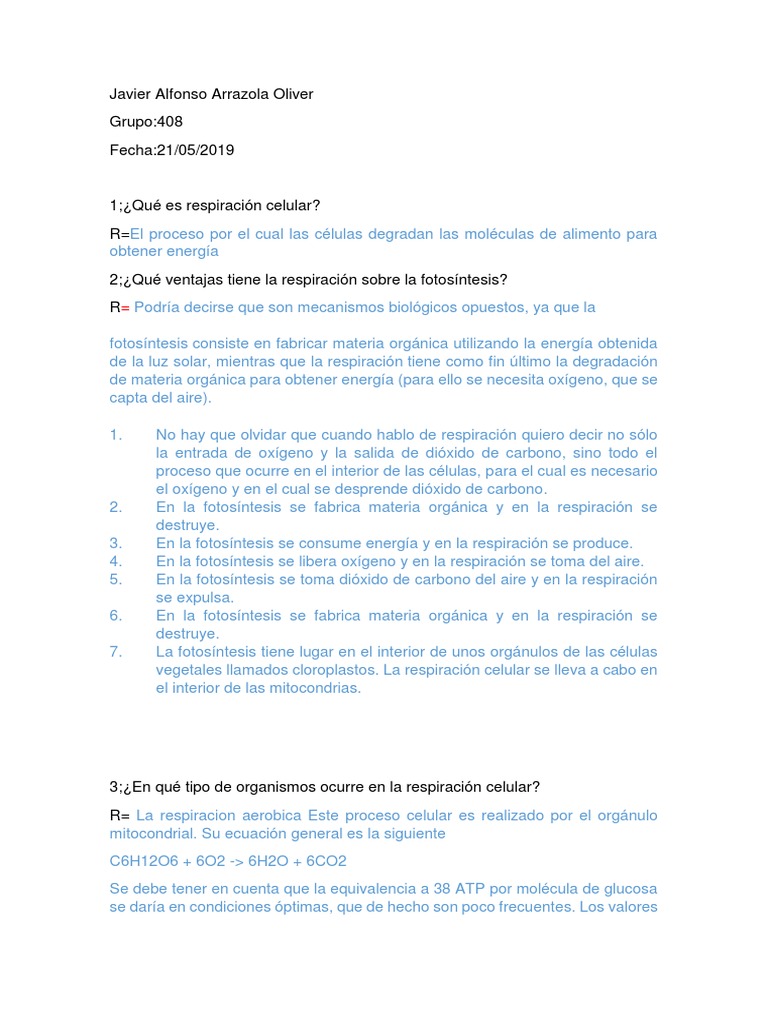 2;¿Qué ventajas tiene la respiración sobre la fotosíntesis?