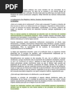 inconsciente del grupo. El término institución alude pues a las normas y valores internalizados transmitidos