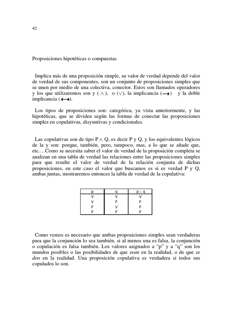 Las copulativas son de tipo P Q, es decir P y Q, y los equivalentes lógicos