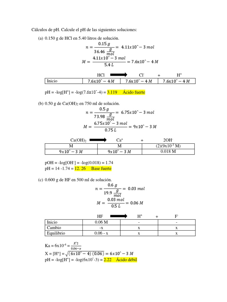 pH = -log[H+] = -log(7.6x10ˆ-4) = 3.119 Ácido fuerte