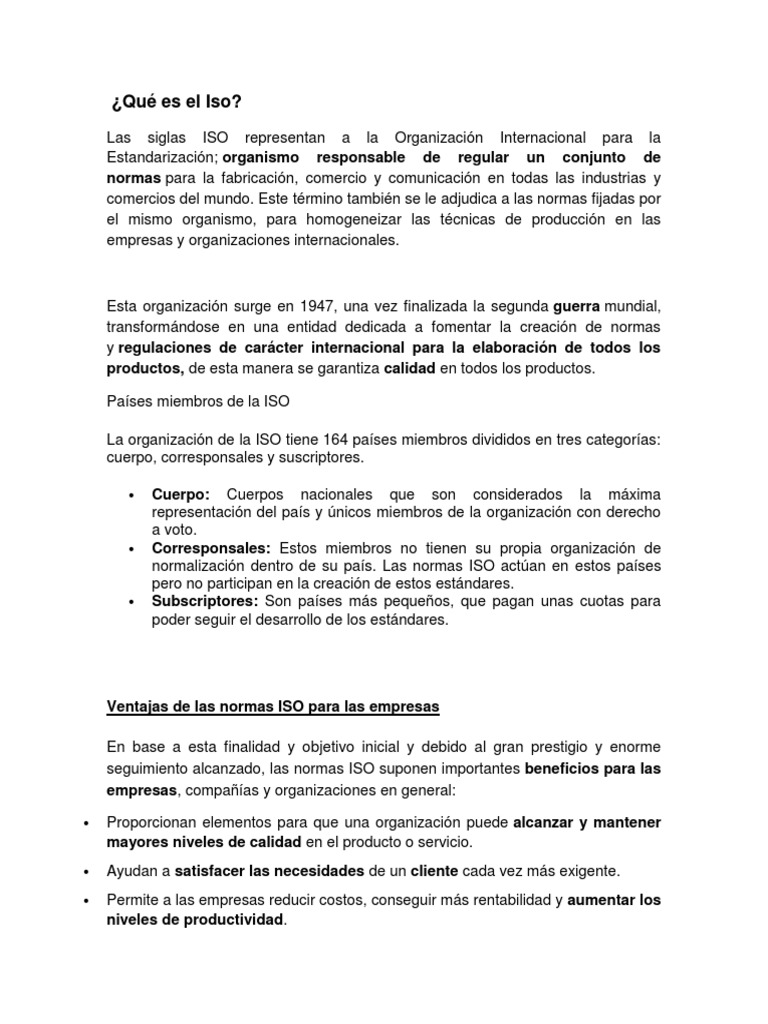 y/o productos. A continuación te detallamos algunas de las normas ISO más
