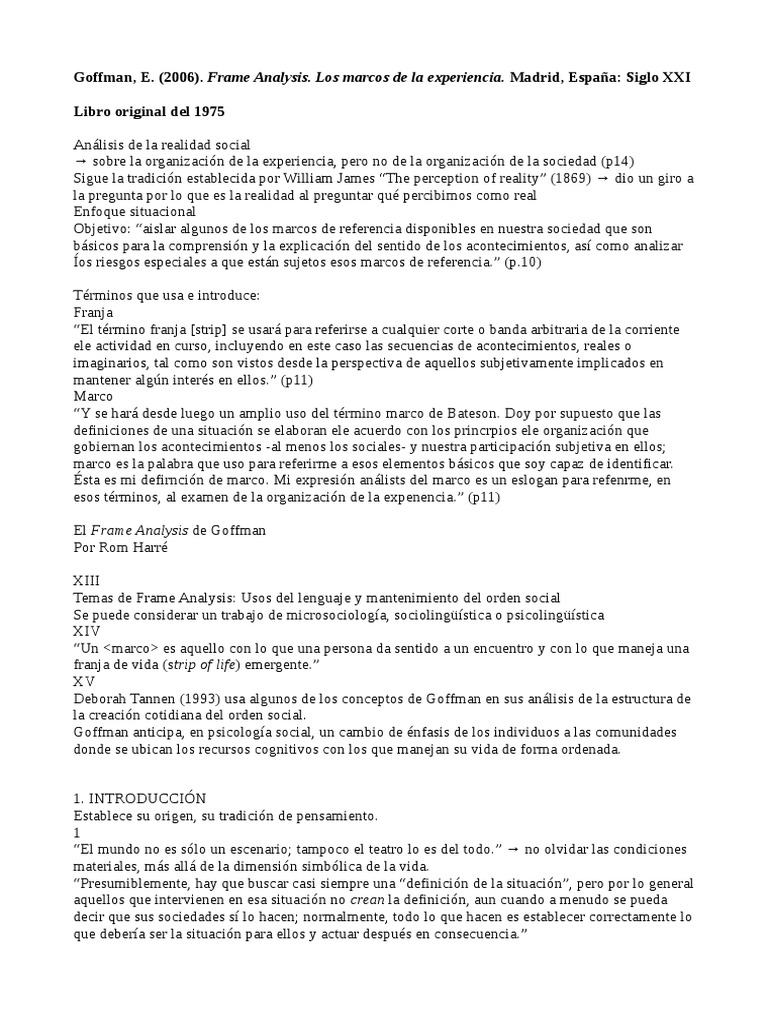 Temas de Frame Analysis: Usos del lenguaje y mantenimiento del orden social
