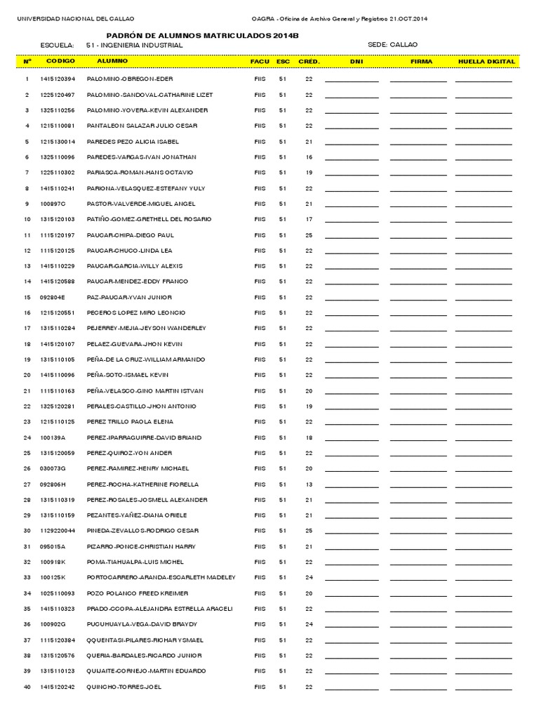 41 1415110041 QUINTANA-ASENCIOS-JUNIOR RICARDO FIIS 51 22 _________________ __________________ __________________