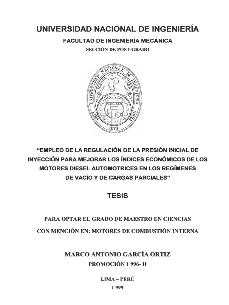 presión inicial de inyección para mejorar los índices económicos de los motores
