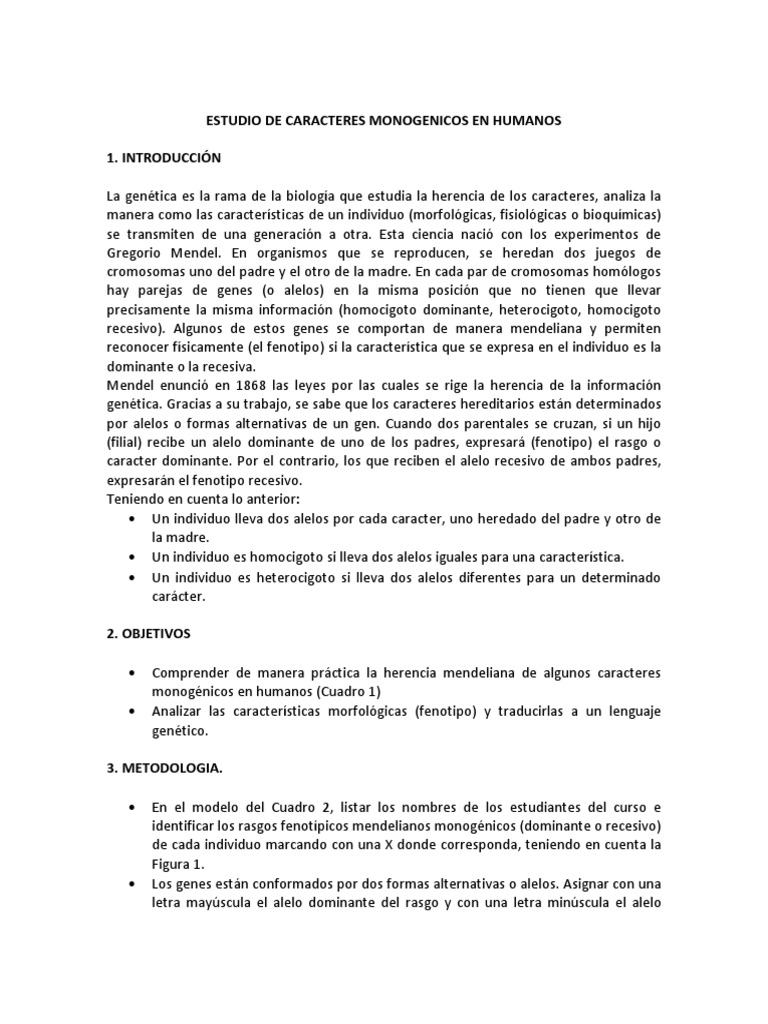 ESTUDIO DE CARACTERES MONOGENICOS EN HUMANOS