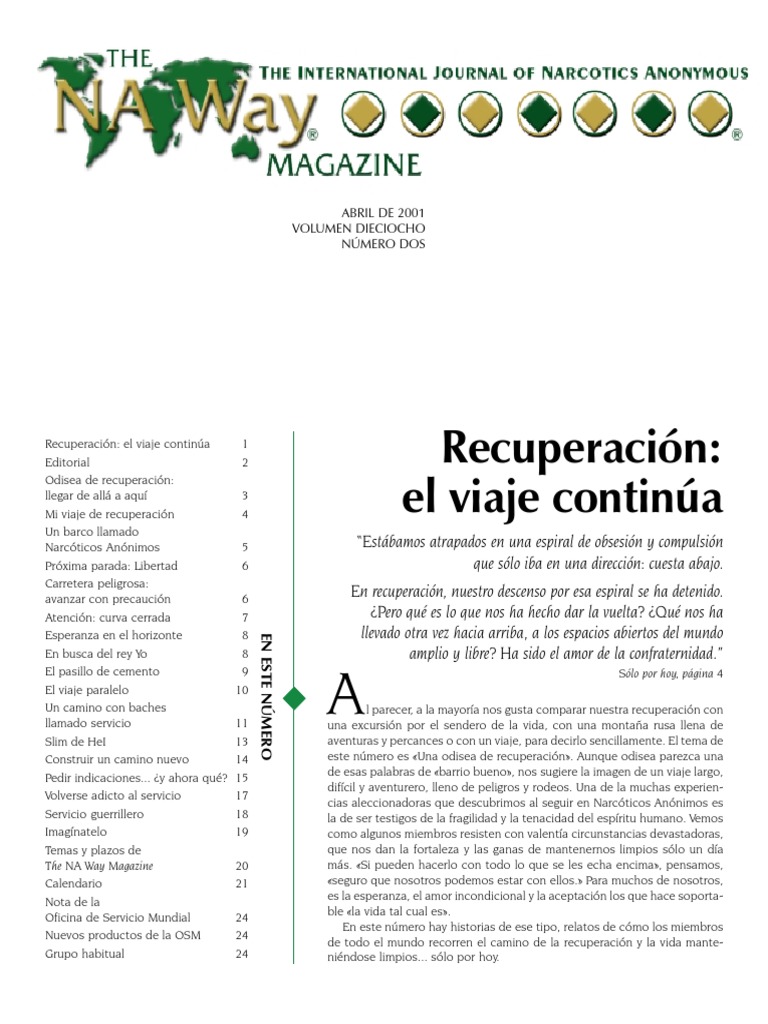 nimos, The NA Way Magazine ni Narcotics Anonymous World incluye desde cuestiones de actualidad a acontecimientos de importancia para cada uno de nuestros