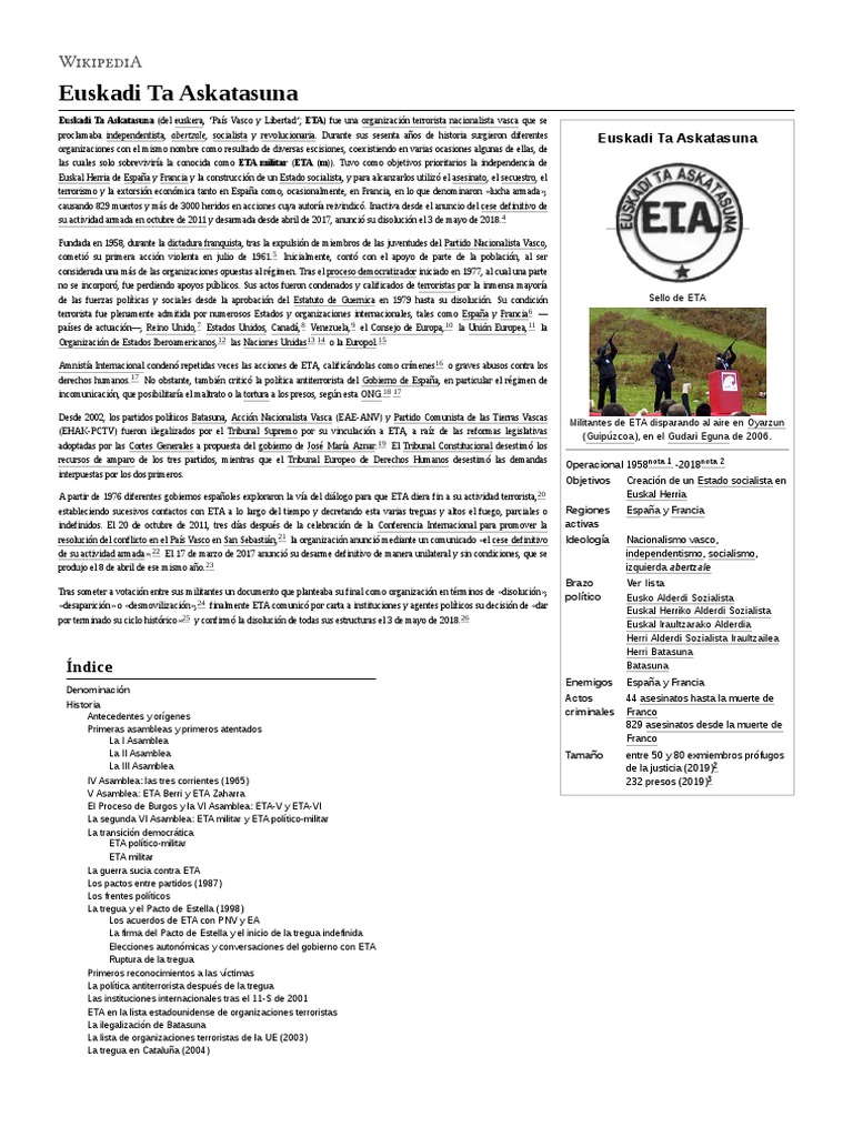 Obtenido de «https://es.wikipedia.org/w/index.php?title=Euskadi_Ta_Askatasuna&oldid=117574429»