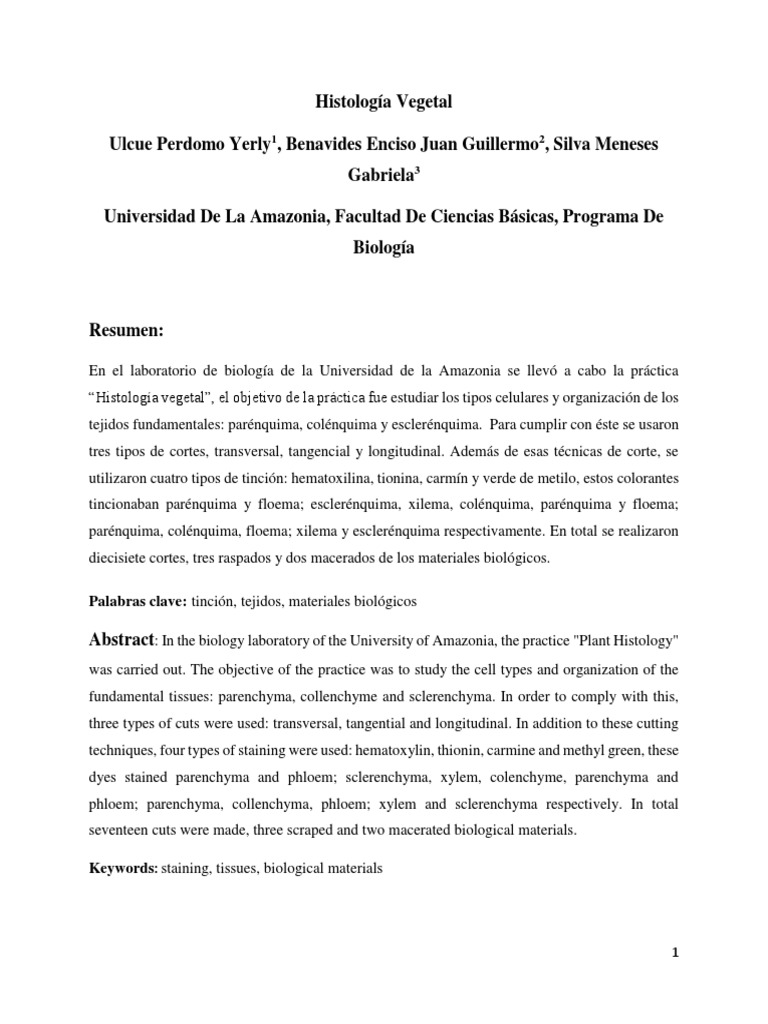 Abstract: In the biology laboratory of the University of Amazonia, the practice "Plant Histology"