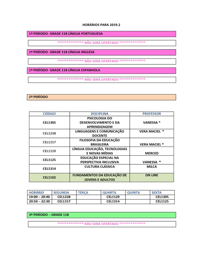 CEL0110 ENSINO DE LÍNGUA NÃO OFERTADA