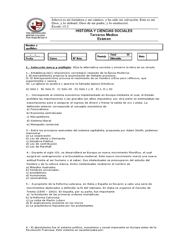 6.- El absolutismo fue el sistema político, económico y social imperante en Europa antes de la