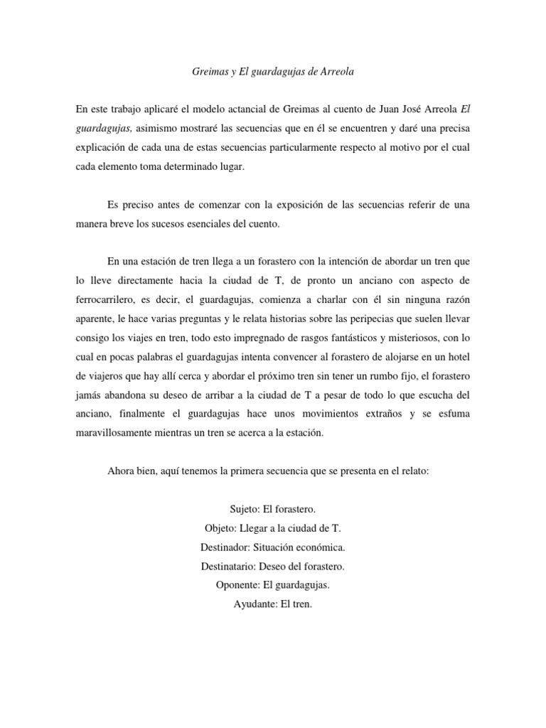 En este trabajo aplicaré el modelo actancial de Greimas al cuento de Juan José Arreola El
