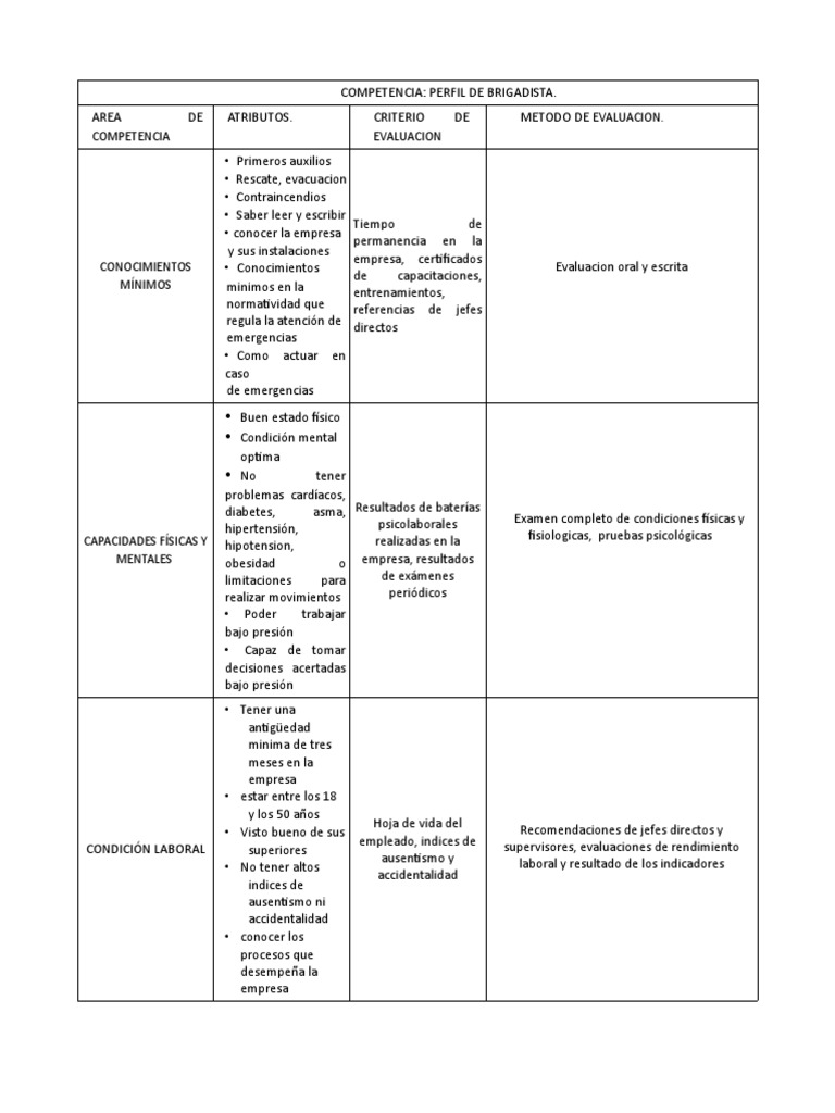 COMPETENCIA: PERFIL DE BRIGADISTA.