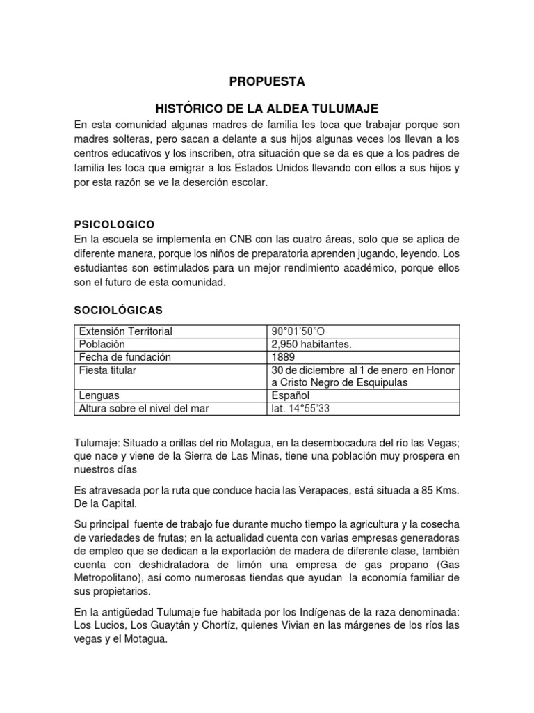 HISTÓRICO DE LA ALDEA TULUMAJE