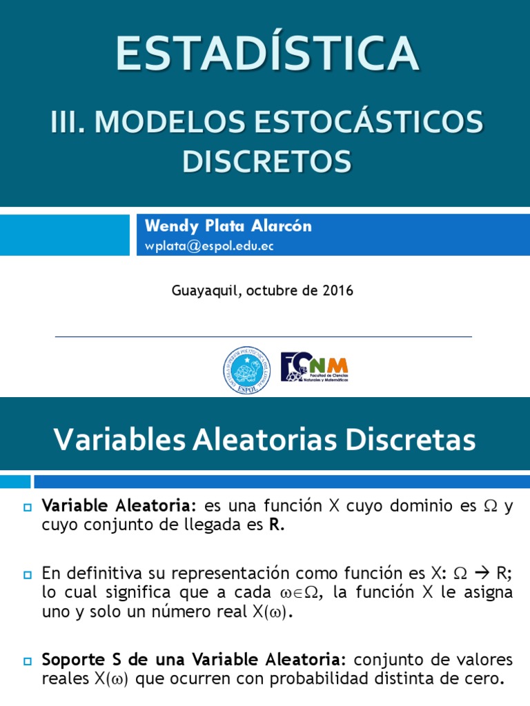 Variable Aleatoria Discreta: X es discreta si su soporte S