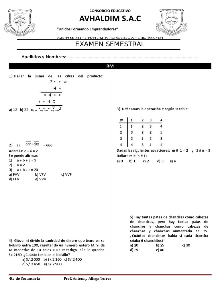 4to de Secundaria Prof. Antonny Aliaga Torres