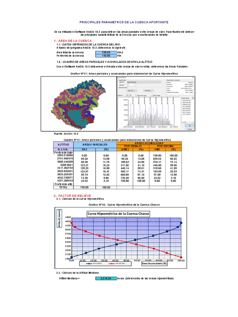 1.2.- CUADRO DE AREAS PARCIALES Y ACUMULADOS SEGÚN LA ALTITUD