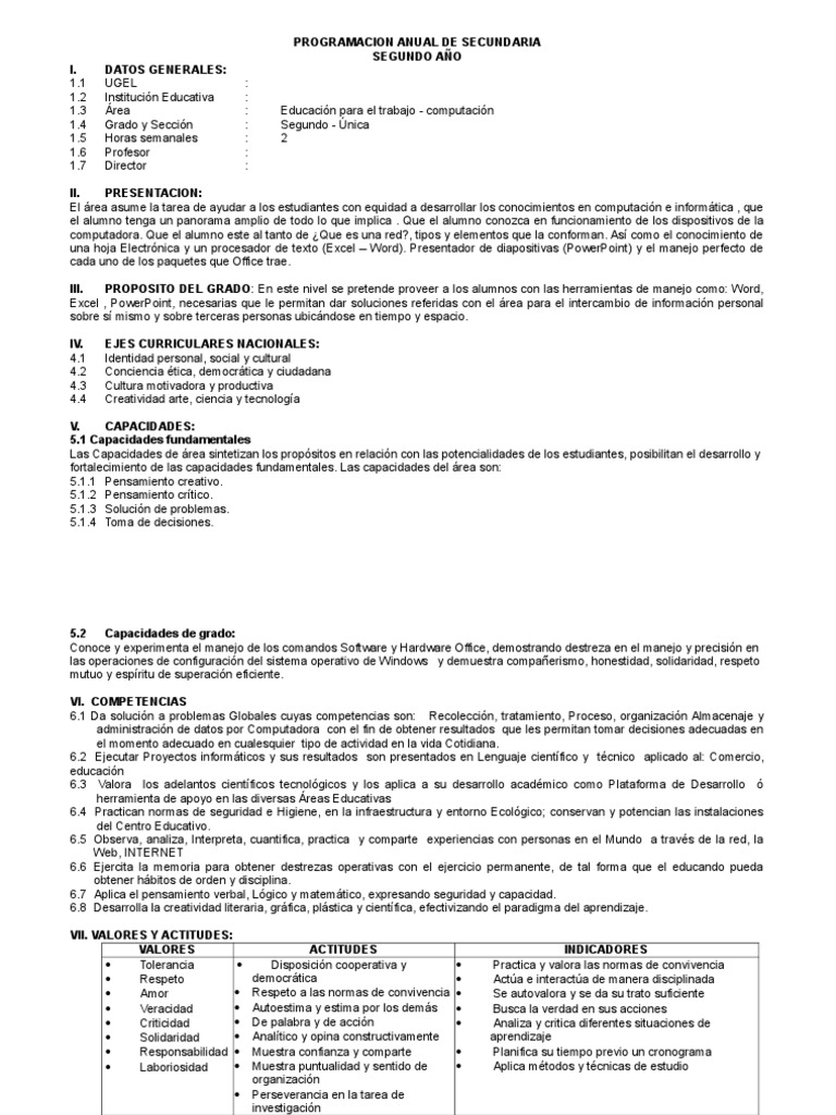 Programación Anual Computación 2° Secundaria