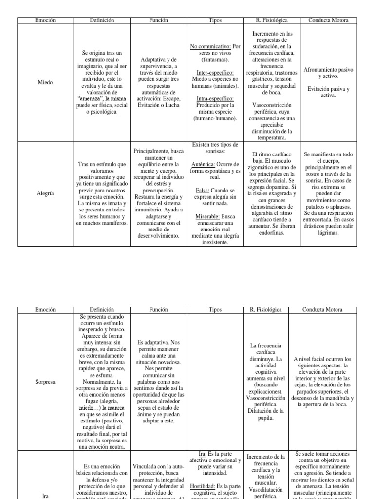 Emoción Definición Función Tipos R. Fisiológica Conducta Motora