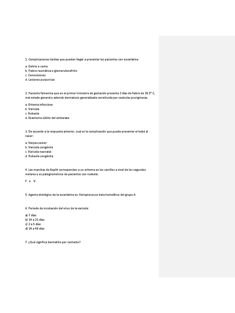 5. Agente etiológico de la escarlatina es: Estreptococco beta hemolítico del grupo A
