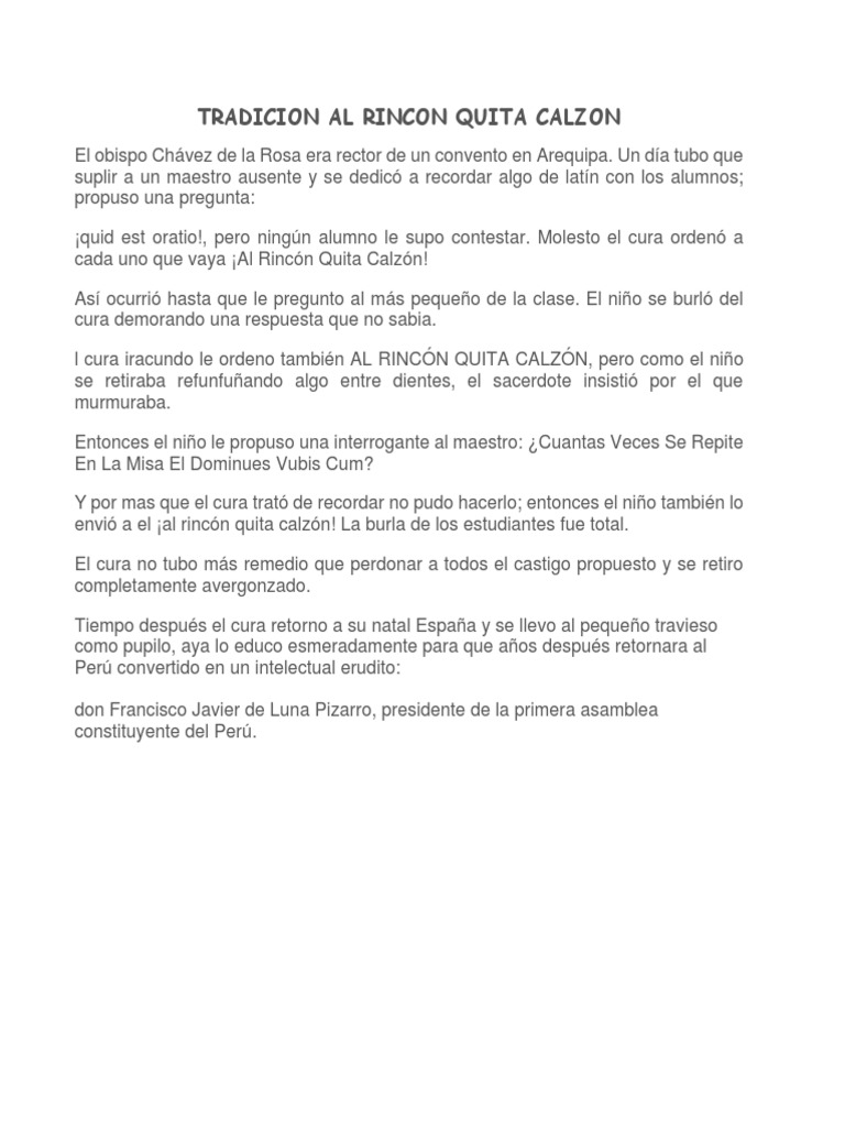 l cura iracundo le ordeno también AL RINCÓN QUITA CALZÓN, pero como el niño