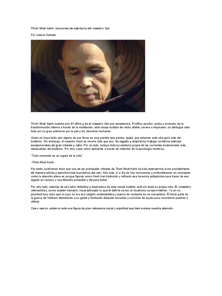 budismo. Sin embargo, el maestro Hanh es mucho más que eso. Su legado y amplísimo trabajo combina matices