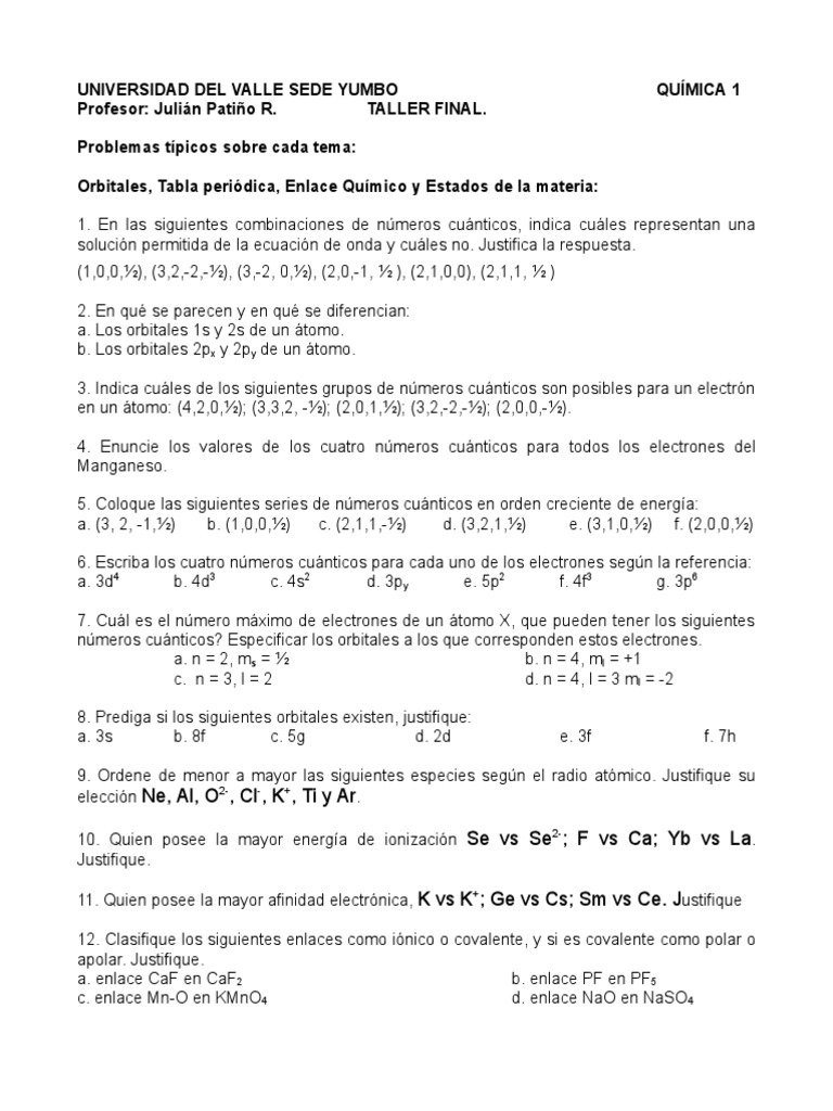 UNIVERSIDAD DEL VALLE SEDE YUMBO QUÍMICA 1