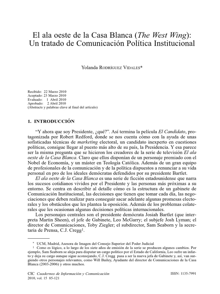 Yolanda Rodríguez Vidales El ala oeste de la Casa Blanca (The West Wing): Un tratado...