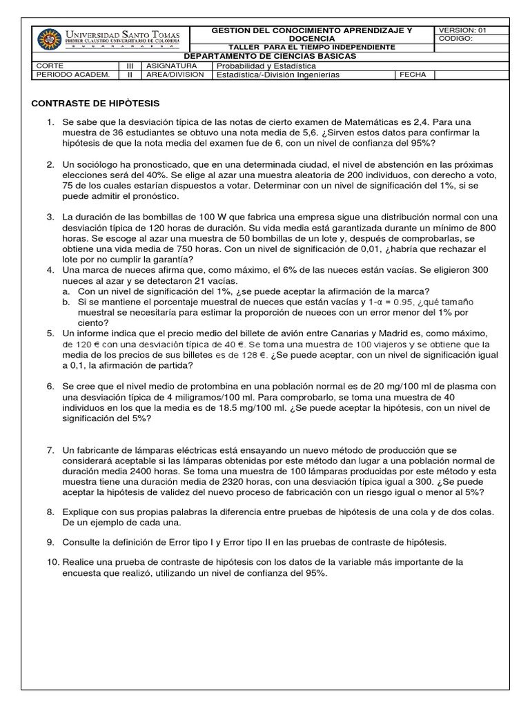 9. Consulte la definición de Error tipo I y Error tipo II en las pruebas de contraste de hipótesis.