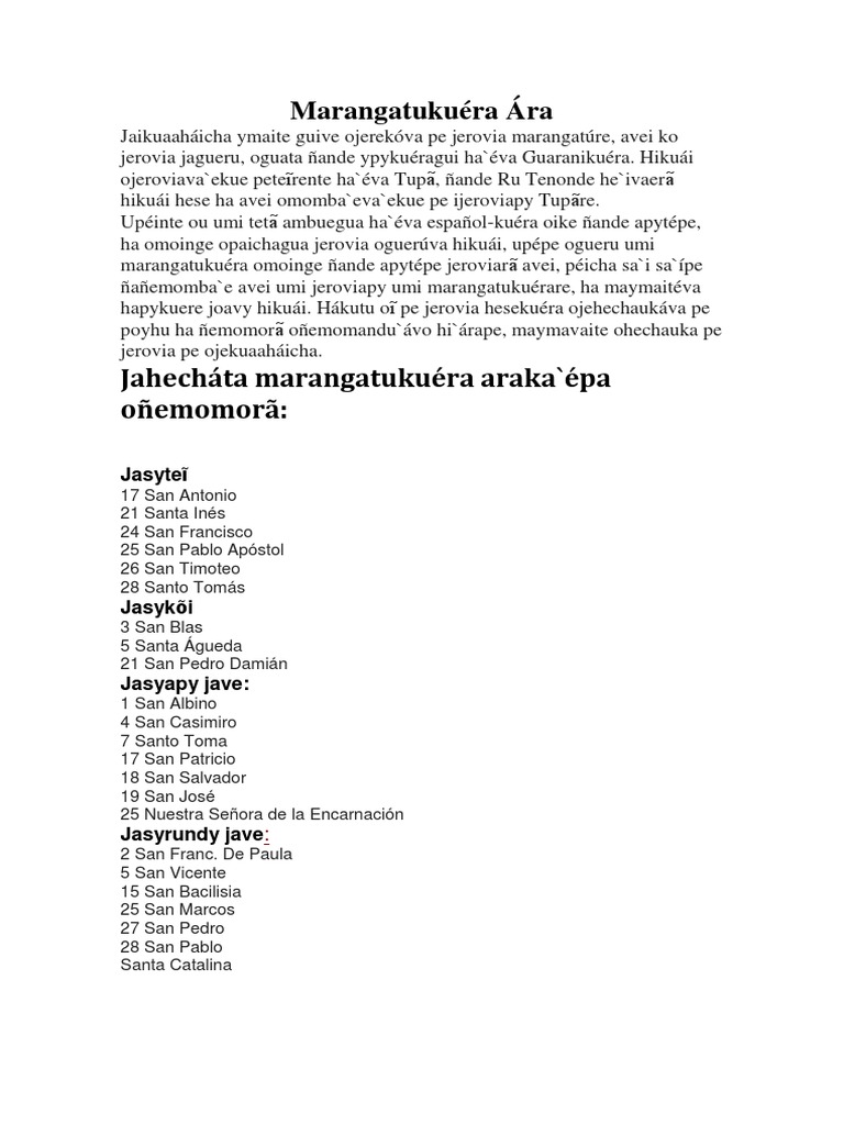 ñañemomba`e avei umi jeroviapy umi marangatukuérare, ha maymaitéva