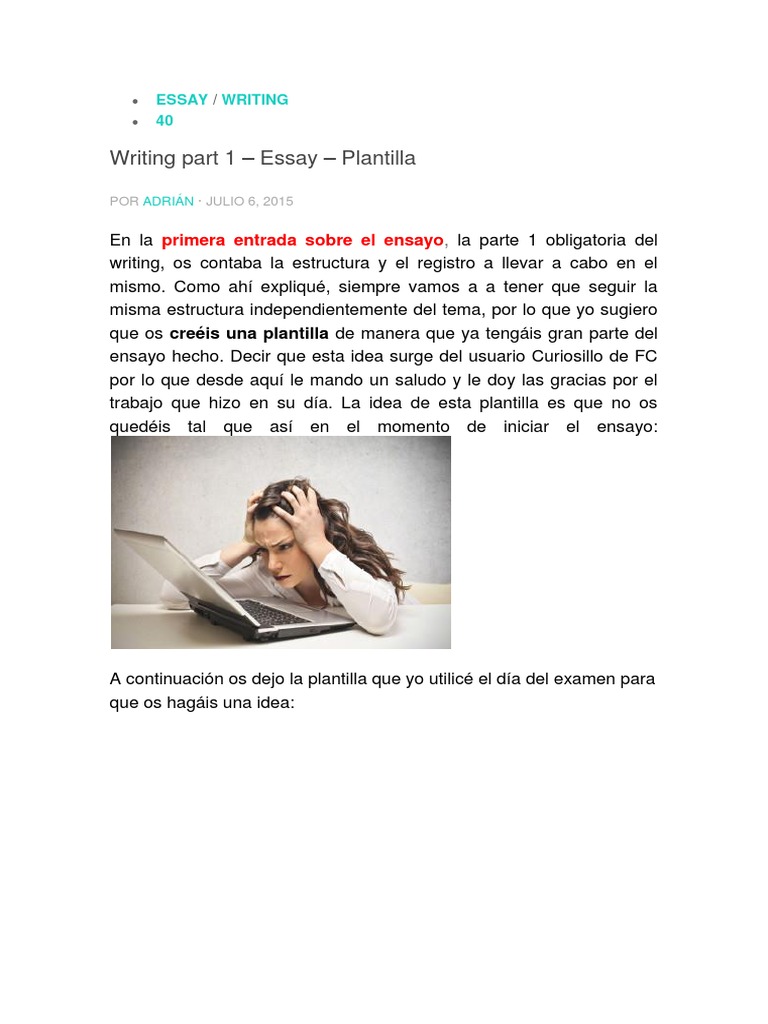 Writing part 1 – Essay – Plantilla
