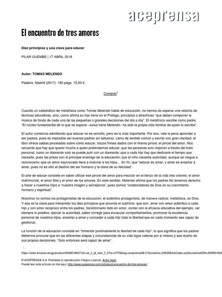 matrimonial, el amor filial y el amor de los amores. En este sentido, Melendo afirma que los padres No tenemos derecho