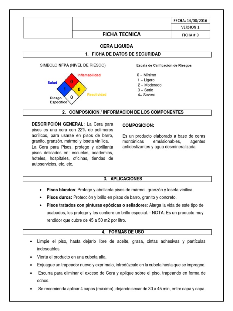 La Cera para Pisos, protege y abrillanta antideslizantes y agua desmineralizada