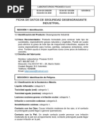 Ingestión Accidental: No provoque el vómito. Solicite atención médica inmediatamente.
