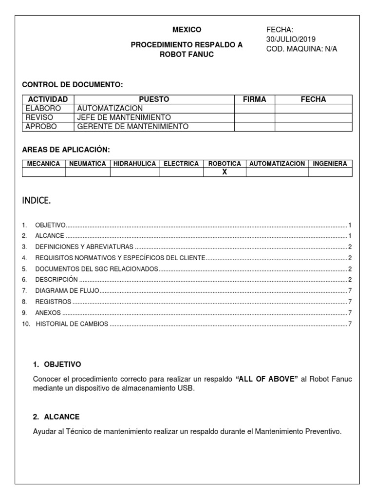 Conocer el procedimiento correcto para realizar un respaldo “ALL OF ABOVE” al Robot Fanuc