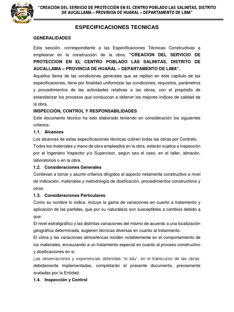 terminado y aprobado por El Supervisor de obra. Este precio se incluye: suministro de