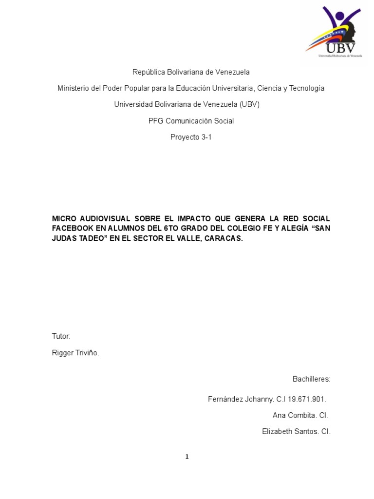 Venezuela) el proyecto consiste en realizar un micro audiovisual sobre el impacto