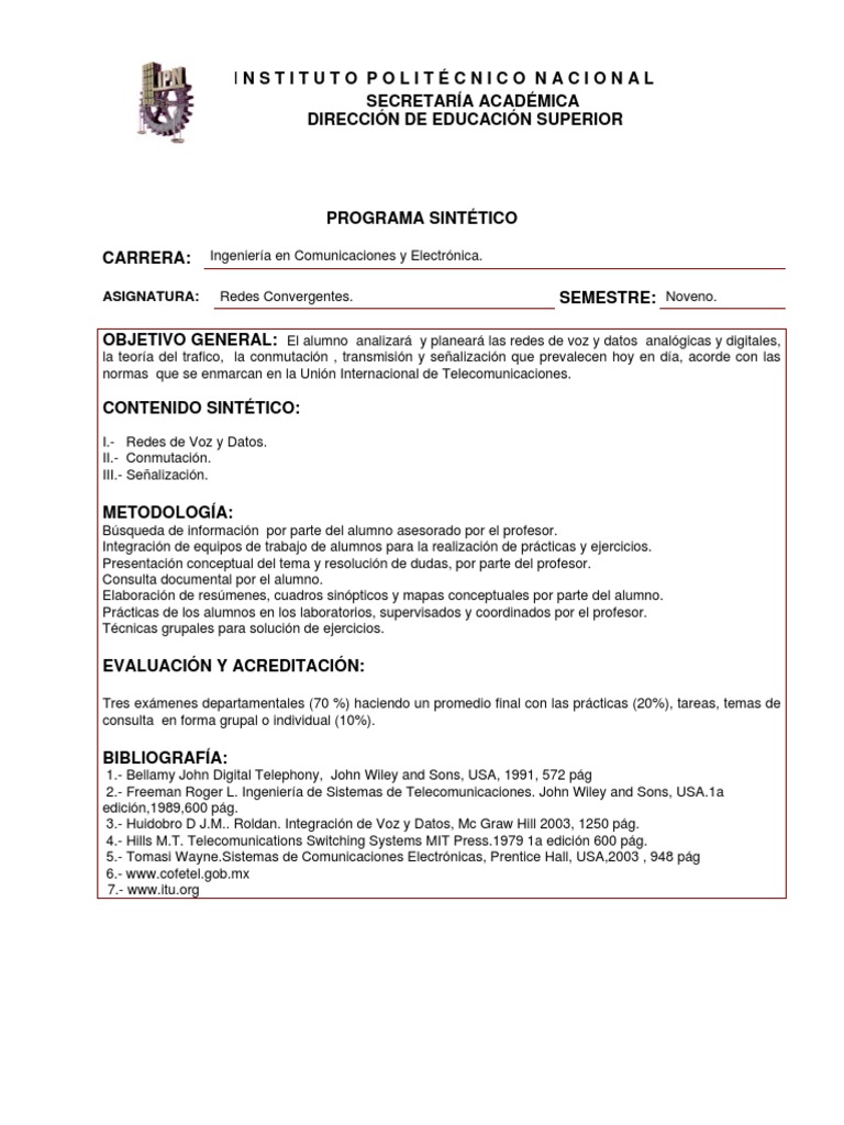 ACADEMIA: Comunicaciones ASIGNATURA: Redes Convergentes.